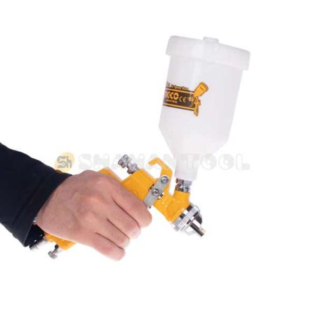 مخزن:600 سی سی وزن پیستوله بدون مخزن : 500 گرم وزن مخزن : 100 گرم سایز نازل:1.4 فشار عملیاتی:2 تا 3.5 بار بیشترین فشار هوا : 8.3 بار عرض پاشش رنگ : 180 تا 250 میلیمتر قطر ورودی هوا : 1/4 اینچ بدنه فلزی با روکش سندبلاست ویژگی:کنترل حجم هوا_سوزن ضد زنگ حرارتی_نازل و کلاه برنجی_قرار گیری نازل از 1.3-2.5